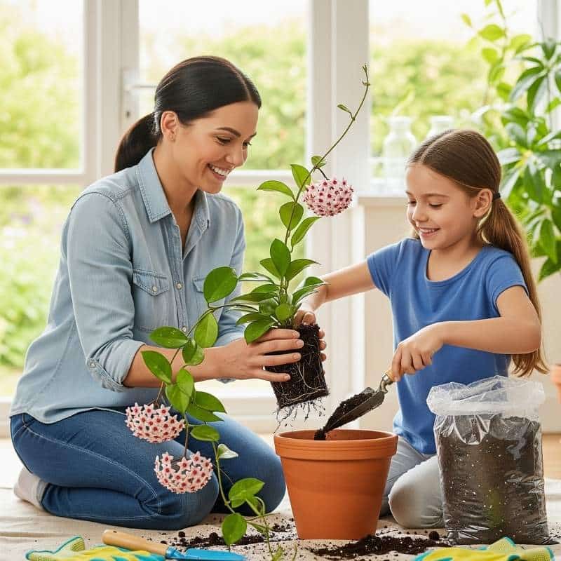 - Resist the Urge to Repot: Only repot your Hoya every 2-3 years, or when it’s so root-bound that water runs straight through without soaking in.